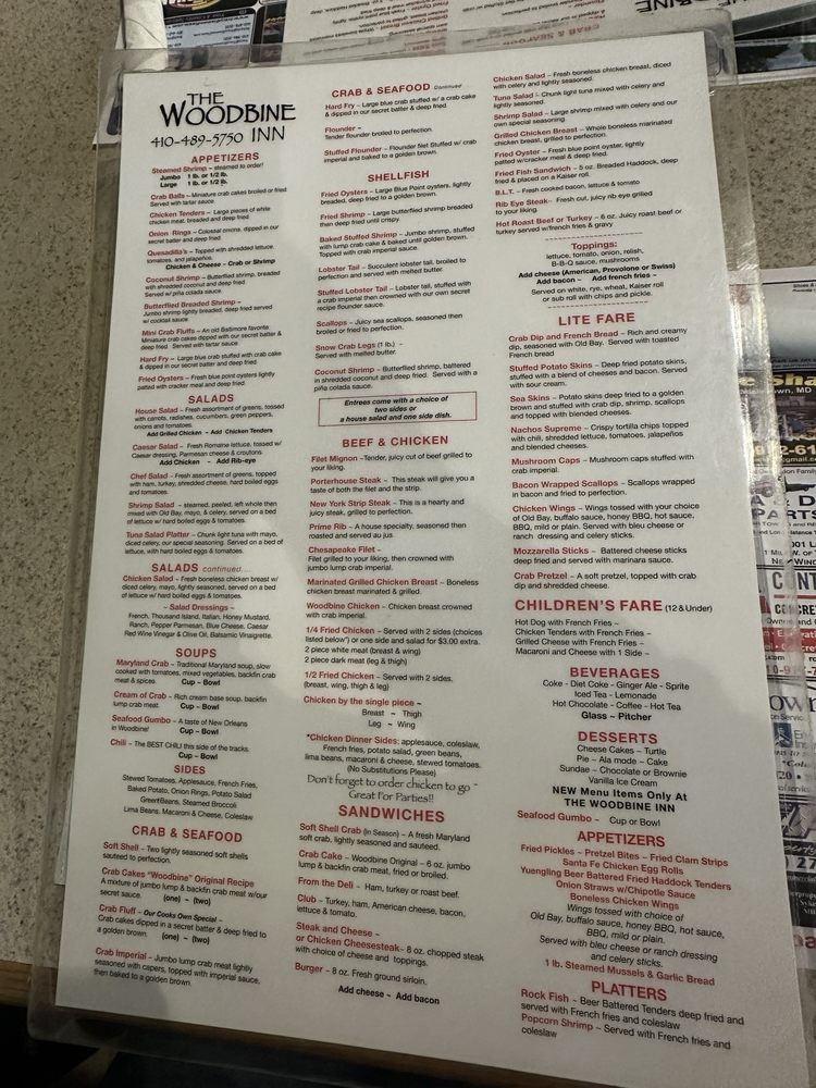 Introducing the menu at Woodbine Inn, a hidden gem nestled in the heart of Woodbine, MD, offers an authentic seafood experience that is hard to beat. Specializing in crabs, the menu showcases an array of flavorful options that keep patrons coming back for more. The renowned Jumbo crabs are a highlight; customers rave about their freshness and taste, often recommending early reservations due to their popularity.